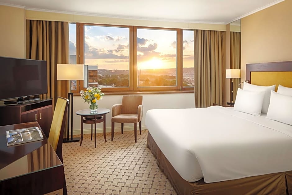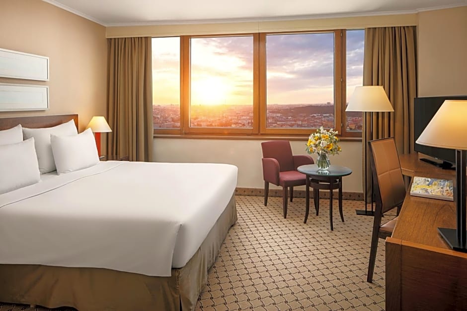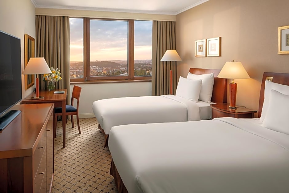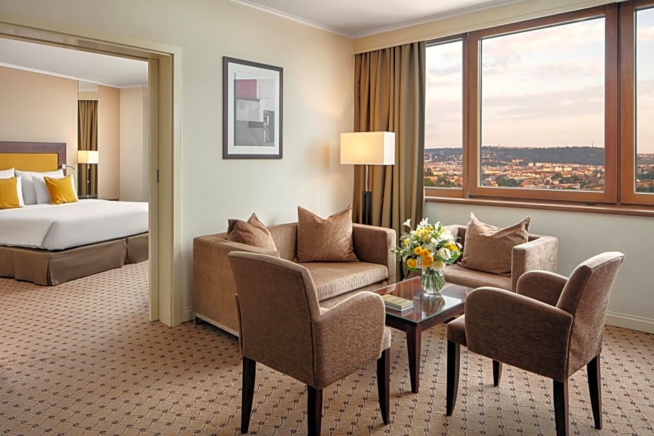 This spacious suites offer stunning views of the Prague skyline, and an elegant interior in which to relax after a busy day. Guests staying in these suites are able to access to the Executive Lounge with panoramic views of Prague and our 26th-floor swimming pool and spa facilities. Interconnecting rooms are available upon request. Spa access includes: • Pool with views over Prague • Beauty treatment rooms • Gym • Separate relaxation areas for ladies and gentlemen including sauna, steam room, plunge pool and loungers.